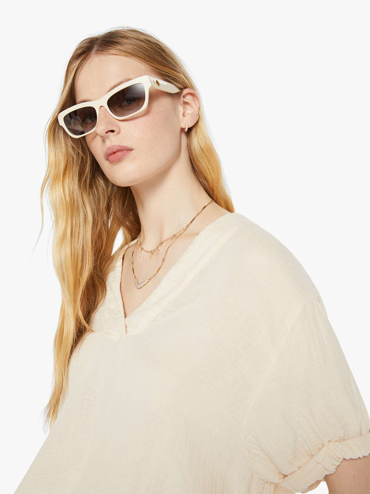 Basically essential. The Avery Top from XiRENA, a Los Angeles brand that pays homage to the Golden State’s moods, features a V-neck, short sleeves and a flowy fit. It's made of soft, gauzy 100% cotton in off-white.