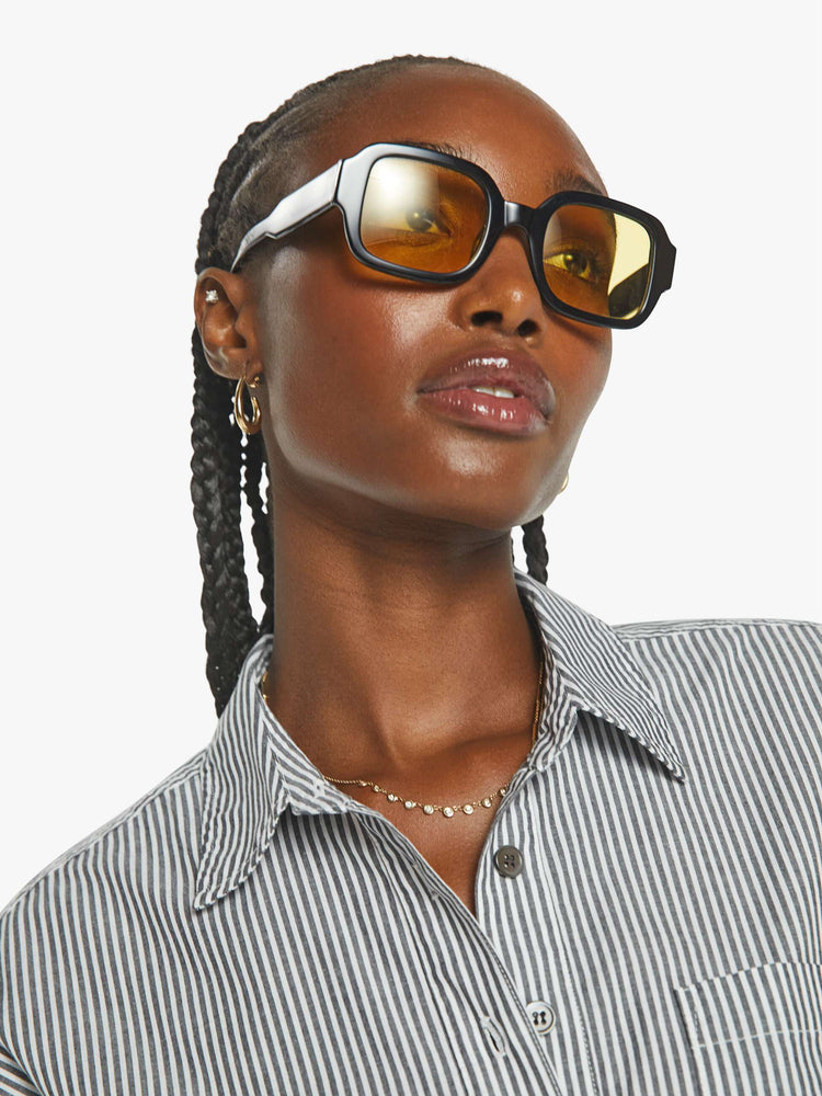 The fine line. A oversized blouse from XiRENA, a free-spirited brand with deep roots in Cali that pays homage to the Golden State’s moods. Made from 100% cotton in black and white stripes, the long sleeve shirt is designed with a buttoned V-neck, drop shoulders, a front patch pocket, curved hem and a loose fit.