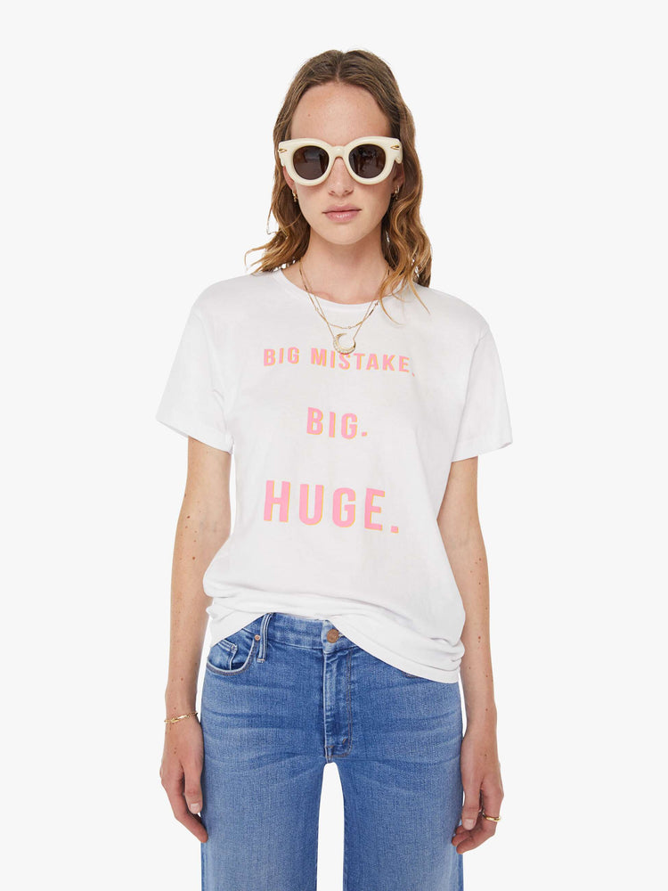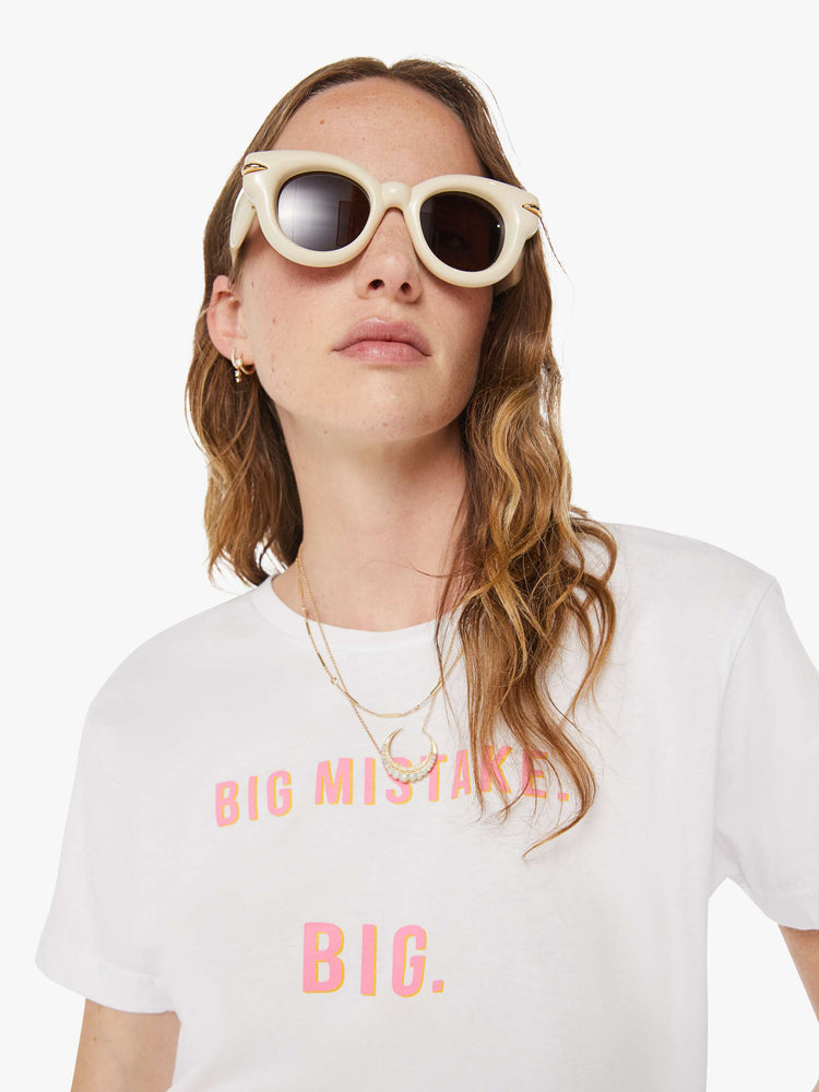 Big mistake. A classic crewneck from Cloney, a Los Angeles streetwear brand rooted in pop culture, that nods to a 90s rom com. Made of 100% cotton in white, the soft, lightweight tee has a slightly oversized fit. Pink and yellow text across the chest and back quote an iconic character. If you know, you know.