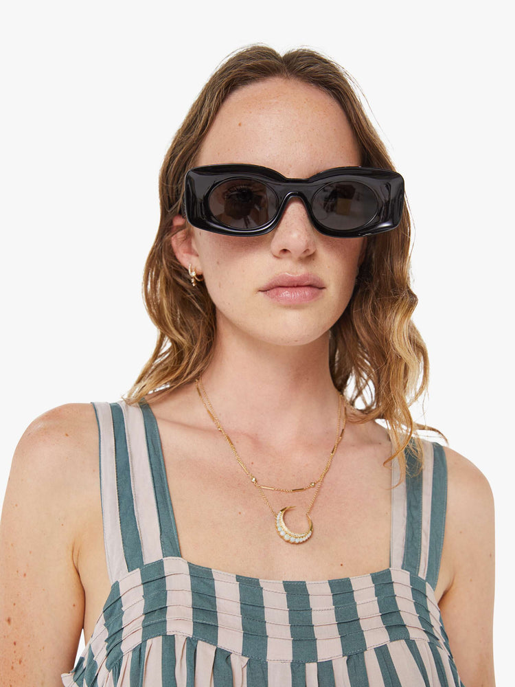 Read between the lines. A breezy blouse from Natalie Martin, a Los Angeles brand that creates pieces for tripping out in Bali or in your own backyard. Designed in a jade stripe pattern, the Jasmine top is designed with detailed straps and buttons in the back.