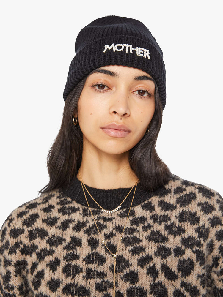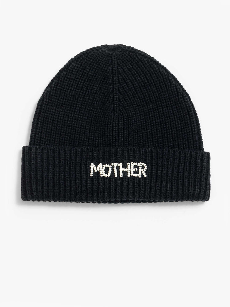 It's the little things. A ribbed beanie with a folded hem and cozy fit. Made from a cotton blend, the beanie is designed in black with MOTHER's name in white beads on the front.
