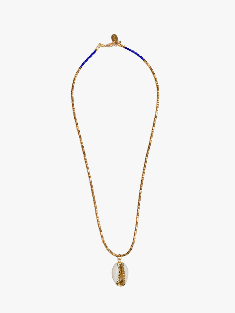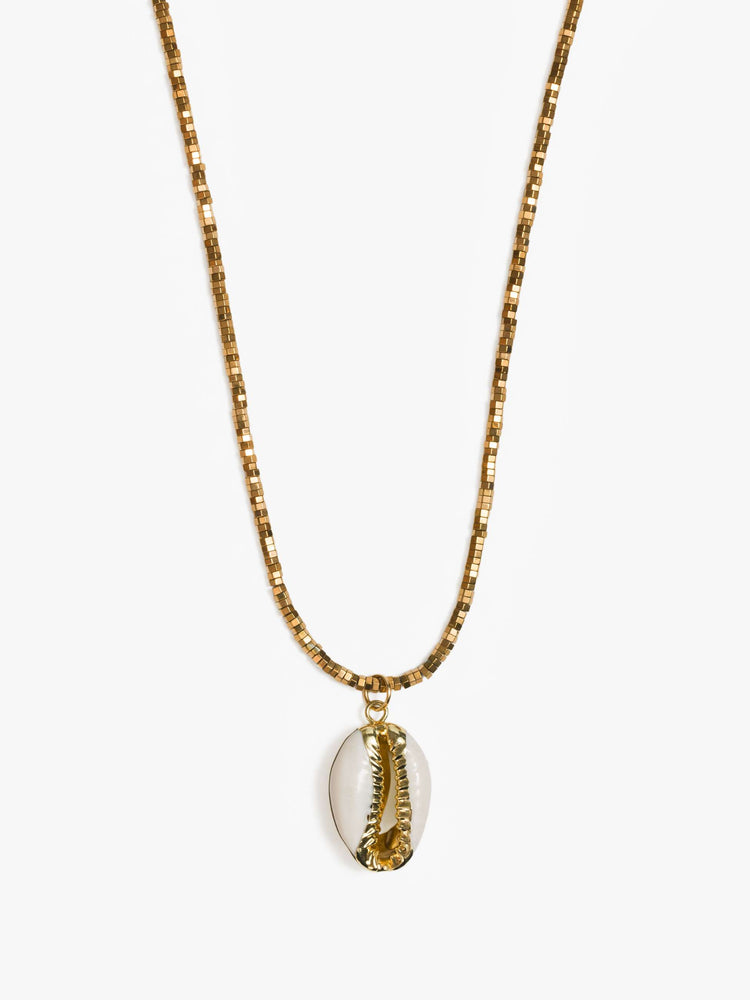 For the shell of it. LUDA is a Los Angeles jewelry brand inspired by the shorelines of California. Made from wire cord and gold-plated hardware, the beaded necklace features gold hematite, African seed beads and a gold-plated white shell charm.