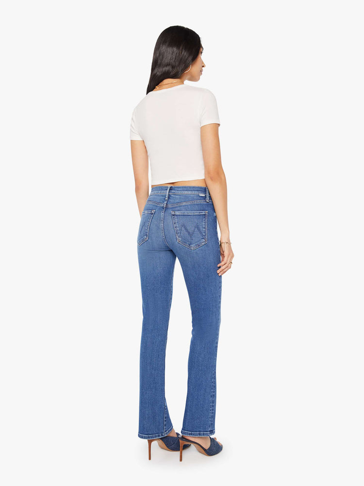 Bench warmers. Narrow flare jeans with a mid rise and a long 31-inch inseam with a clean hem. Made from stretch denim, Dugout Doobies is mid blue with whiskering and fading at the knee.