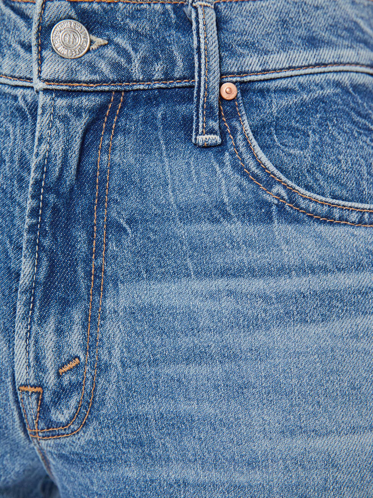 Mid-rise jeans with a loose, straight leg, long 30-inch inseam and clean hem. Cut from semi-rigid SUPERIOR denim, I'm A Winner is a mid-blue with whiskering and fading at the knees.