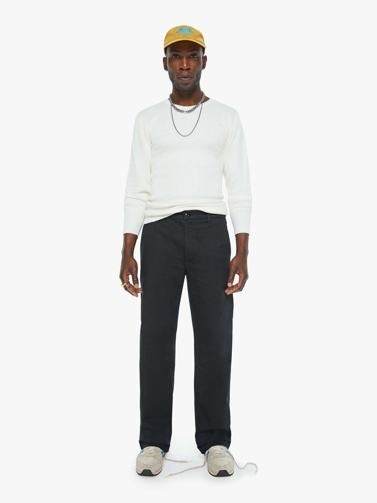 Prep-inspired pants with a mid rise, slit pockets and a 30-inch inseam with a clean hem. The pants are made from cotton with a touch of stretch in black.