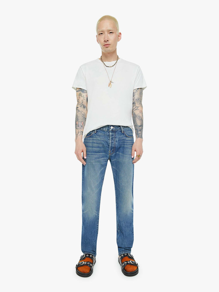 Roger that. A slim-straight leg with a mid rise, button fly, 32-inch inseam and a clean hem. Made from 100% cotton denim, Bootcamp is a mid-blue wash with whiskering and fading at the knee.
