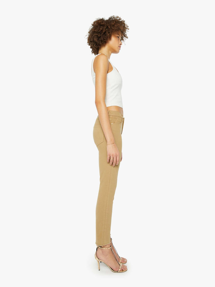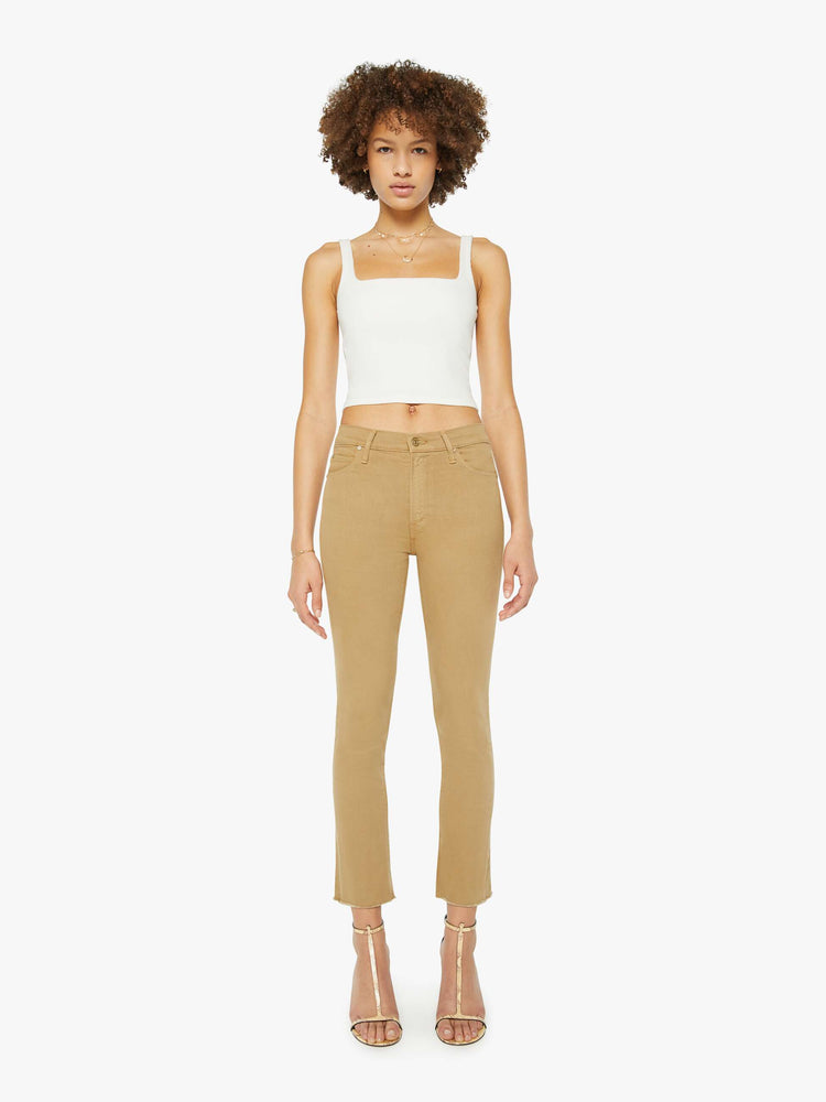 Only at MOTHER. Our most popular mid-rise straight leg hits at the ankle with a frayed hem. Made from a cotton blend with a touch of stretch, Prairie Sand is a light khaki with tonal hardware.