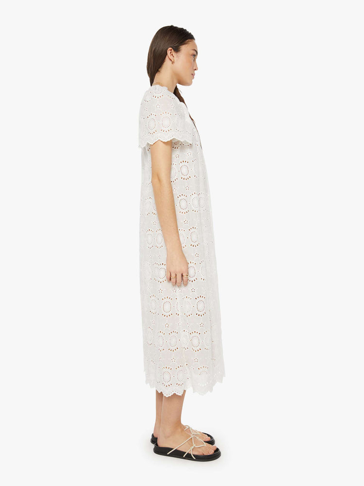 Sensing a pattern. The Sienna Dress from Natalie Martin, a Los Angeles brand that creates pieces for tripping out in Bali or in your own backyard, is made from 100% cotton in off-white with delicate embroidery and eyelet details. The maxi dress is designed with a scoop neck, short flowy sleeves, a loose fit and a slip underneath.
